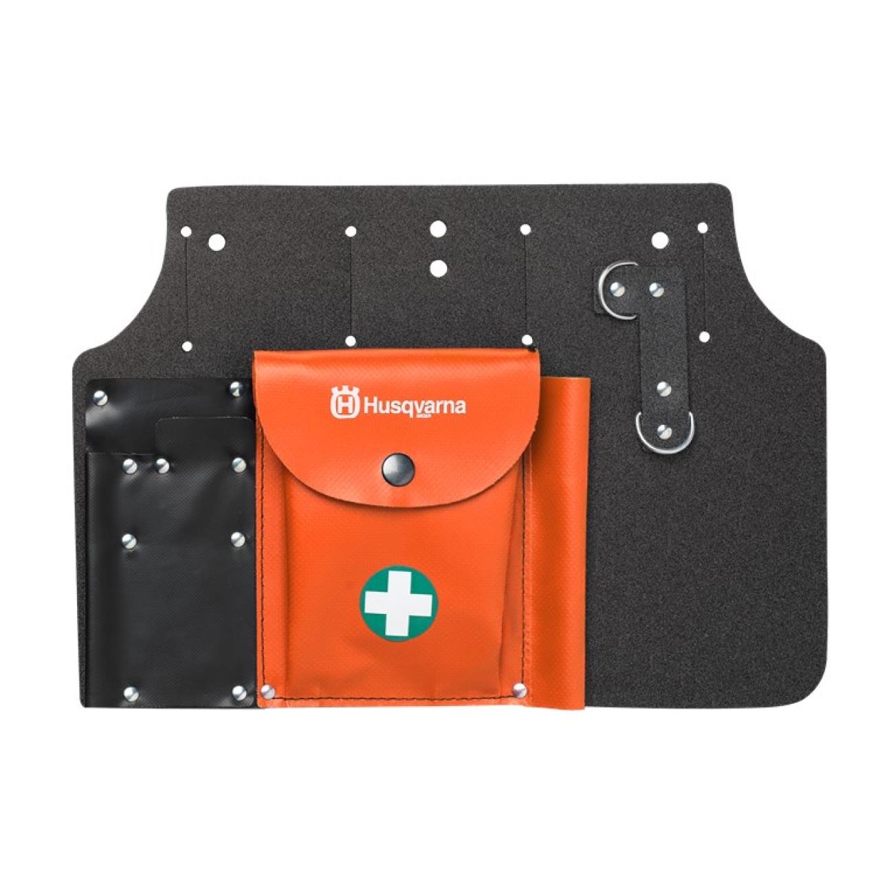 Mit großem Fach für Verbandszeug, Ersatzkette und Vergaserschlüssel. Halter für Feile, Feillehre und Kombischlüssel.